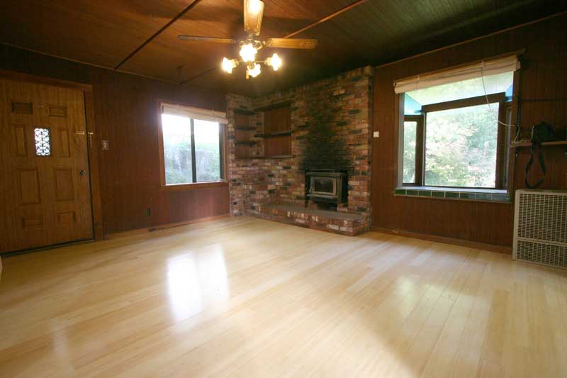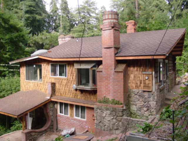 Custom-built home has unique built-in features at every turn. This house was built by Limey Kay, now a La Honda legend. He was a genius with brick and stone and built most of the chimneys and barbecues in town, easily identified by the trademark abalone shell embedded somewhere in the project. This is a classic La Honda house, and although now secure on a new foundation, does not have a flat floor or square corner anywhere! Definitely a house full of character. ![]() The house is set on a sunny sloping lot. This view is from the front sidewalk. The front door is on the left. ![]() The house has amazing brick work, inside and out. ![]() Off street parking is provided by this new parking lot, which offers easy access to the front door. ![]() Here is the back of the house. Although on a slope, it is terraced and offers excellent garden space. The basement is not accessible as it is being remodeled. ![]() Living room is 14 x 15 and includes a wood stove. Notice the unusual redwood paneling. ![]() The Living room has bamboo hardwood flooring. ![]() The view of the side yard from the Living room and Kitchen. All the property visible is part of this rental. ![]() The kitchen has a big window and lots of cabinets. ![]() The kitchen has a gas stove and the refrigerator is included. ![]() This room can be used as a Dining Room, office or extra bedroom and is 10 x 11. It is very sunny and has great views. ![]() It has two skylights. ![]() Notice the brickwork and built-in barbeque. ![]() Here is the view out the Dining room windows. You are high over the La Honda neighborhood. ![]() The Bed Room is 10 x 15 with nice windows. It connects to the bathroom and walk-in closet. ![]() Another view from the closet. ![]() This walk-in closet has a washer and gas dryer hookups. LOWER LEVEL![]() Off street parking is provided by this new parking area. You can see the woods with a small stream running by. ![]() Living room is L shaped and includes a built-in granite shelf. ![]() The Living room has tile flooring and an amazing fireplace. The ceilings are 10 feet tall! ![]() The kitchen has a granite countertop and very modern design. It has a gas stove and the refregerator is included. Laundry hookups can be found to the left. ![]() The bath room is all tile with a spacous shower. ![]() The huge bedroom features a built-in granite desk and granite bookshelves. ![]() The bedroom also features a gas fireplace high enough to allow full use of the floorspace. |