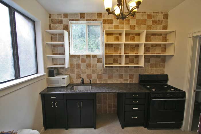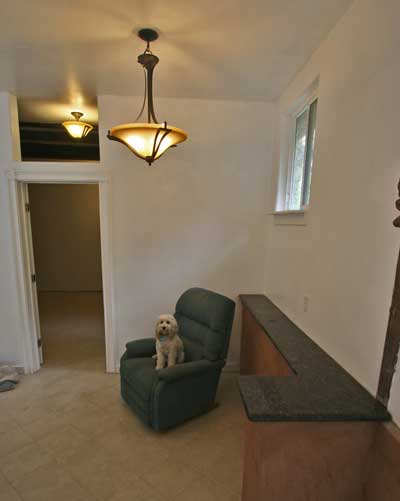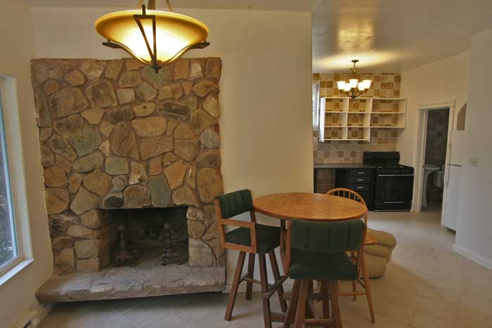Custom-built home has unique built-in features at every turn. This house was built by Limey Kay, now a La Honda legend. He was a genius with brick and stone and built most of the chimneys and barbecues in town, easily identified by the trademark abalone shell embedded somewhere in the project. This is a classic La Honda house, fully restored with all the convienences! For rent is the lower level only. ![]() The house is set on a sunny sloping lot. This view is from the front sidewalk. ![]() Outside is a covered porch and a brick patio and barbique. ![]() Off street parking is provided by this new parking area. You can see the woods with a small stream running by. ![]() Here is a view from above. Although on a slope, the yard is terraced and offers excellent garden space. The upstairs is a second unit, accessesable from another street above. ![]() Living room is L shaped and includes a built-in granite shelf. ![]() The Living room has tile flooring and an amazing fireplace. The ceilings are 10 feet tall! ![]() Here is a view of the front yard from the above. All the property visible is part of this rental. ![]() The kitchen has a granite countertop and very modern design. It has a gas stove and the refregerator is included. Laundry hookups can be found to the left. ![]() The bath room is all tile with a spacous shower. ![]() The huge bedroom features a built-in granite desk and granite bookshelves. ![]() The bedroom also features a gas fireplace high enough to allow full use of the floorspace. ![]() Here is the view out the Living room windows. You are high over the La Honda neighborhood. | |||